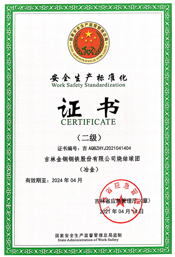 安全生產(chǎn)標(biāo)準(zhǔn)化證書(二級(jí))
