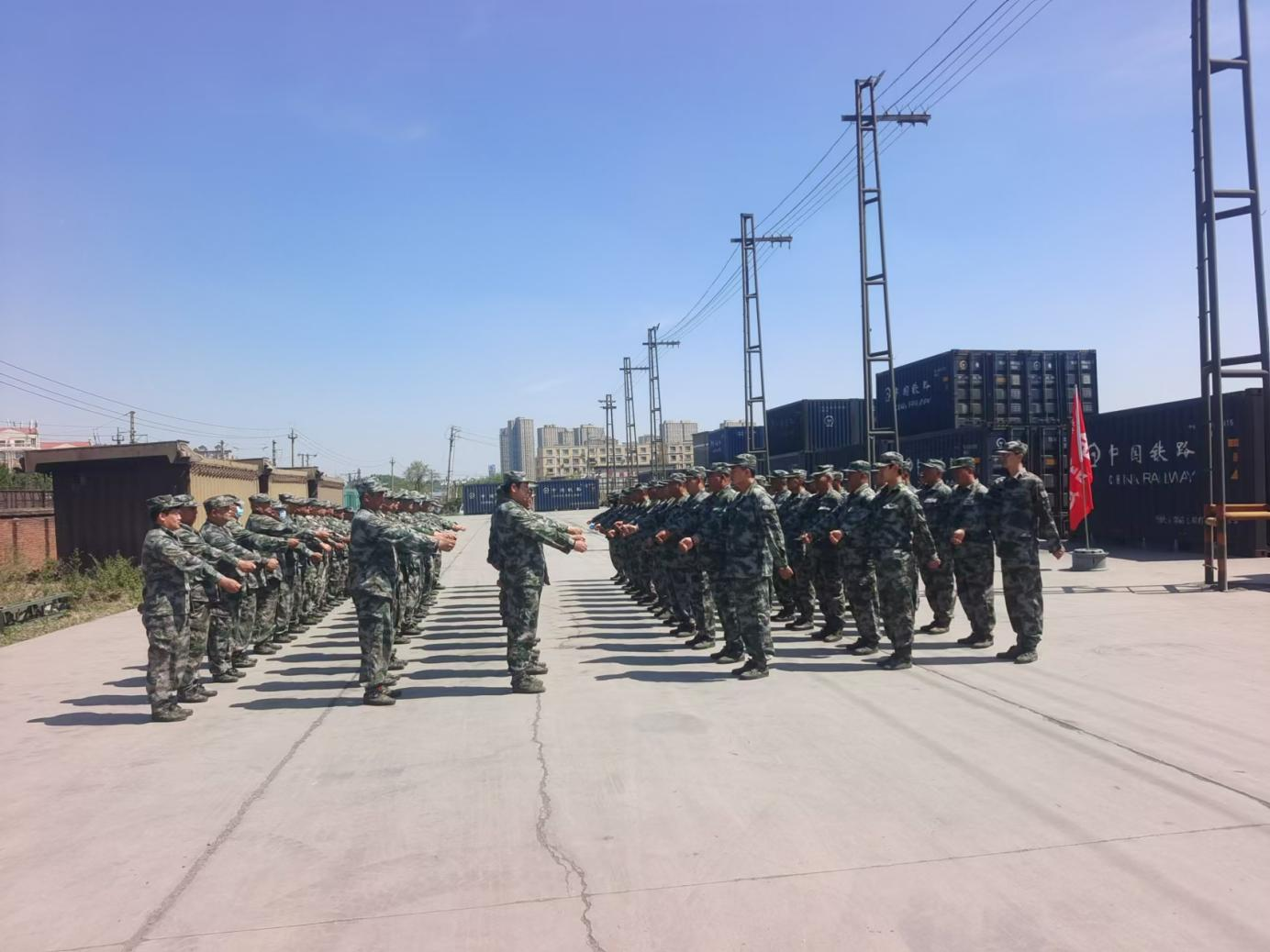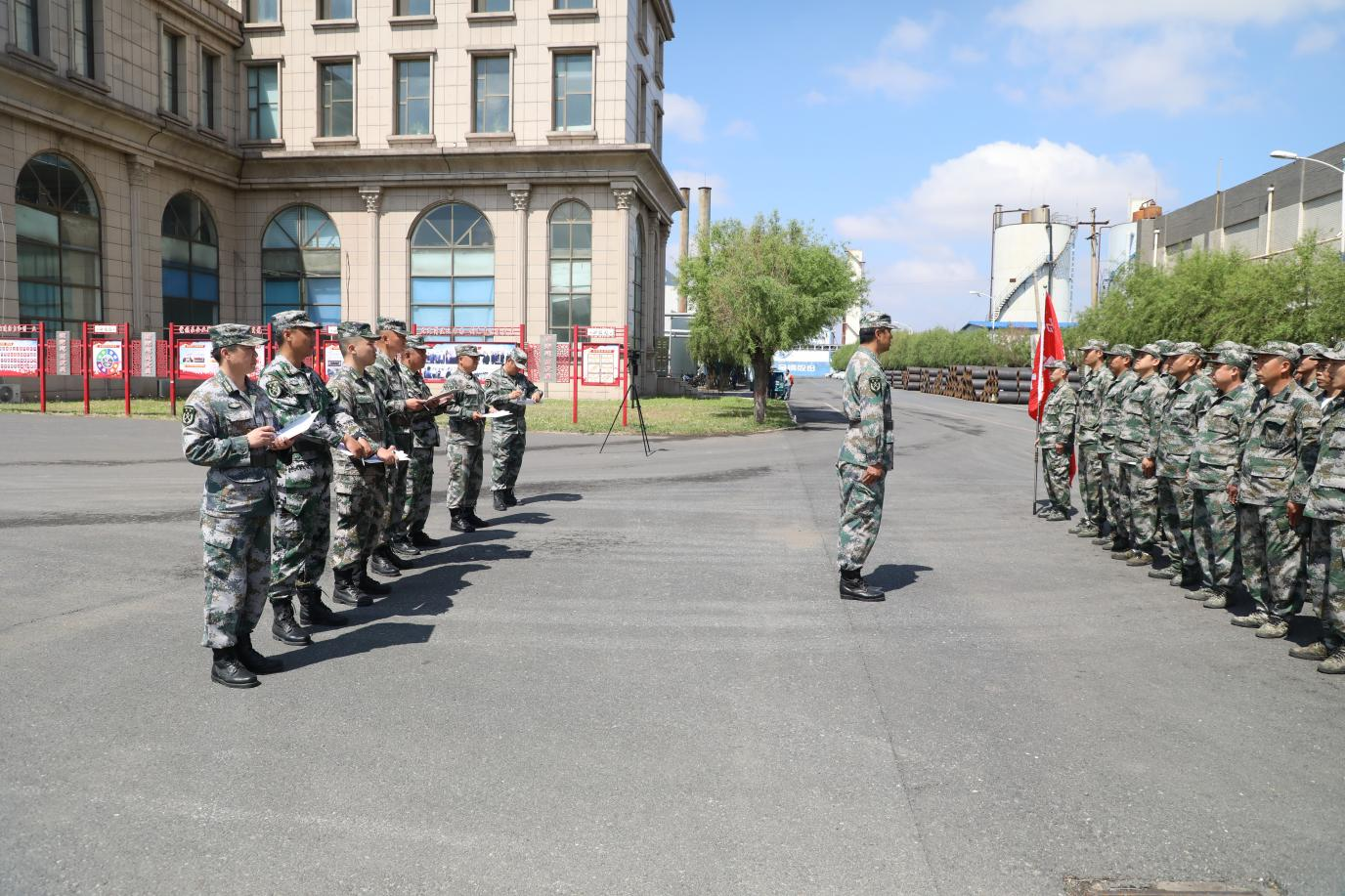 為了檢驗軍訓效果,對41支方隊進行了考核,每支方隊邁著鏗鏘有力步伐,喊著自行編寫的號子,雄赳赳氣昂昂的走到考核官面前,將訓練科目一一展現,充分展示了員工良好的精神面貌,及滿滿的集體榮譽感。