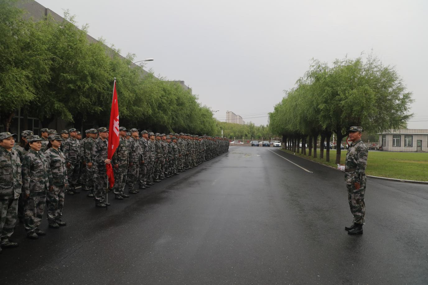 最后,帶隊教官田鳳鳴對軍訓做了點評,此次軍訓遇上了幾次大風、小雨,員工沒有退縮,依然頂著大風,冒著小雨堅持訓練,充分展現了金鋼員工的意志品質,達到了軍訓目的,取得了較好的成果,同時希望所有員工將良好的意志品質帶到工作中,為金鋼發展獻出一份力量,也祝愿金鋼蒸蒸日上,紅紅火火!